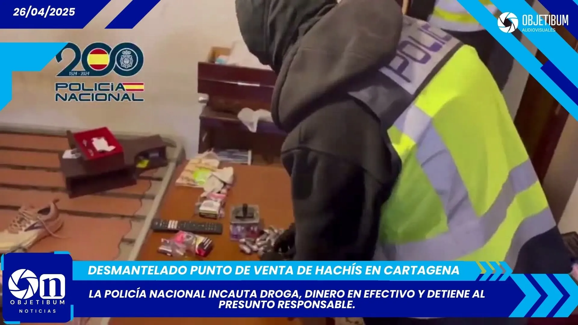 La Policía Nacional ha desmantelado un punto de venta de hachís en Cartagena tras una operación en la que se incautaron 28 bellotas de hachís, con un peso total de 307 gramos, además de dinero en efectivo y una balanza de precisión.